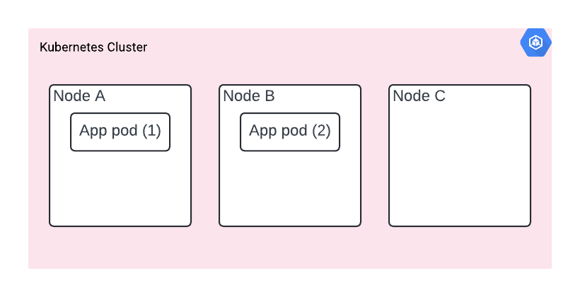 Your cluster has nodes A, B and C (you can’t see them, since it’s hidden from you, but they are there - you can verify with kubectl get nodes